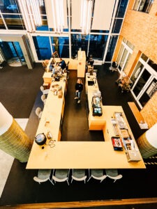 Kom overleggen en lunchen in het café, werken in een studie-ruimte of ontspannen in de binnentuin!