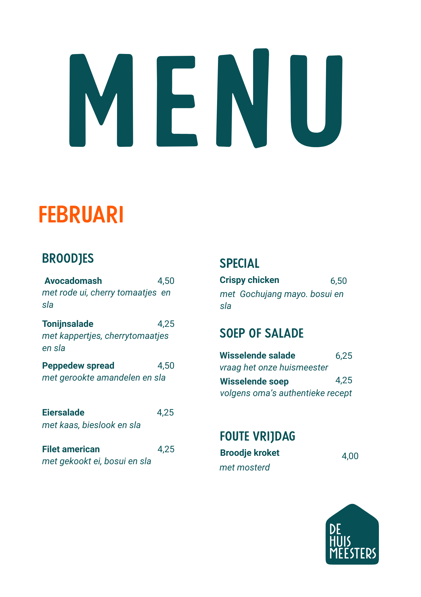 Uiteraard kunt u ook gewoon losse broodjes en drankjes van onze kaart bij ons komen bestellen en/of halen.